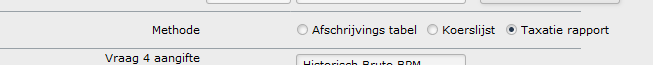 Als je in tabblad 2 en 3 bij bruto BPM + methode, de methode op ”afschrijvingstabel” of ”koerslijst” hebt staan dan zal het niet zichtbaar worden in het rapport.